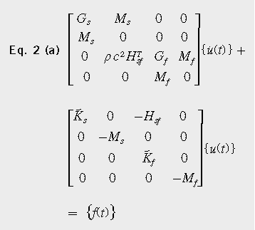 這里,ρ為空氣密度,c是聲速,Gs是結構的反對稱陀螺矩陣,Gf是流體的反對稱陀螺矩陣。時變量分別為位移x、聲壓p和力f。